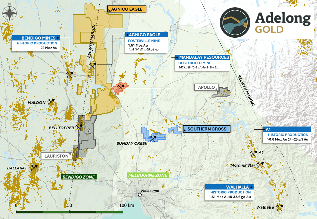 The Lauriston Project comprises a 28,700-hectare landholding within Victoria’s highly productive Bendigo Zone, immediately adjacent to Agnico Eagle’s Fosterville Mine. The Lauriston Project spans six exploration licences EL5479, EL6656, EL7044, EL7045, EL7048 and EL8054.